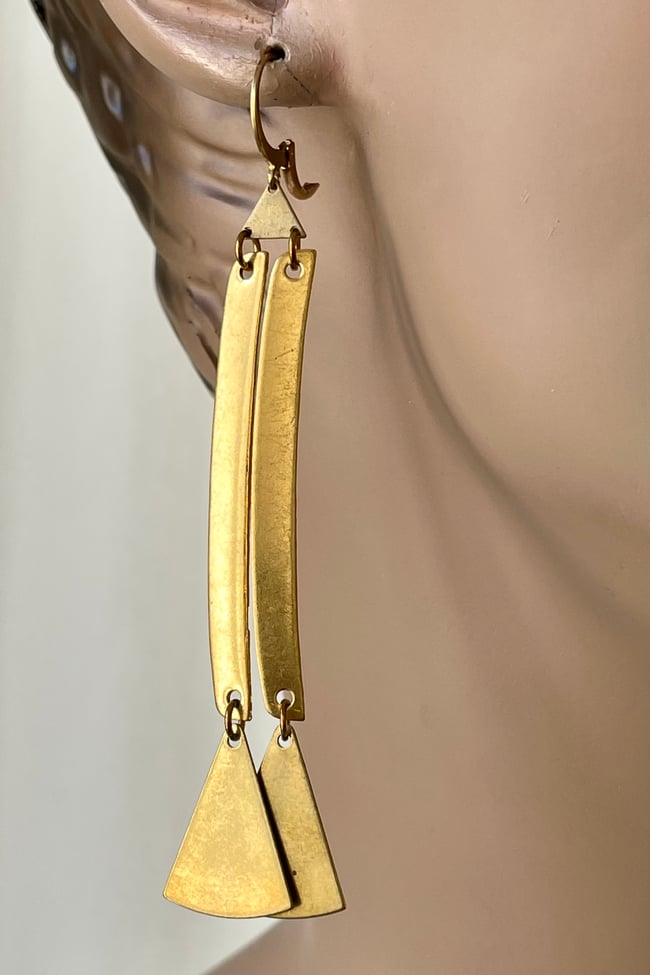 Raw brass Art deco earrings. Wearing HATCHEPSOUT long earrings, be the queen of Egypt… but non only! Length: 9.4 cm. Limited edition.