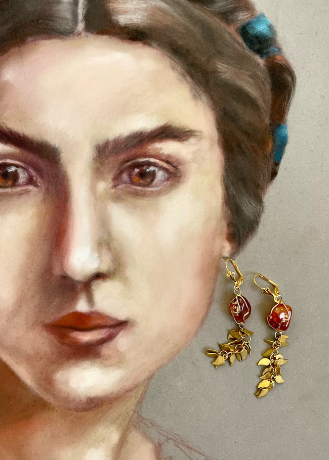 Refined chic brass earrings featuring gorgeous cornaline beads… a statement! Length: 7.5 cm. Lightweight. Limited edition.