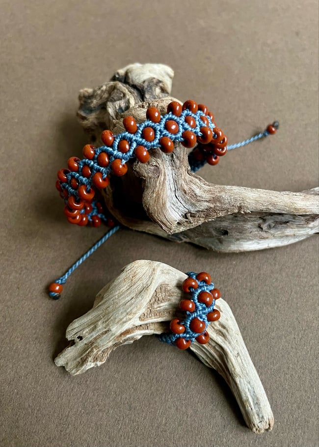 Bracelets hippie chics en micro macramé et perles de rocaille. Possibilité de les associer avec les bagues Moebius. Le fil utilisé pour le tissage est de la meilleure qualité : il s’agit du fil brésilien Linhasita en polyester enduit de cire. Coloris au choix. Série limitée.
