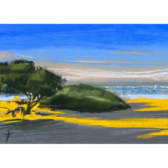 ▪️Paysage aux pastels tendres sur carte Pastelmat de Clairefontaine. Format 13x18 cm, encadré d’un passe-partout au format extérieur standard de 24x30cm. ▪️Signé BT - Bérengère Thieffry : « Dans mes dessins / peintures, je vise un certain réalisme à l’échelle de l’ensemble, mais plus on s’approche et plus la touche et l’écriture tendent à l’abstraction. Les pastels secs me permettent, par une superposition de couches et de gestes, un rendu pictural néo-impressionniste »▪️Merci pour votre commande ! Envoi suivi, rapide et soigné vers son nouveau propriétaire ;-)